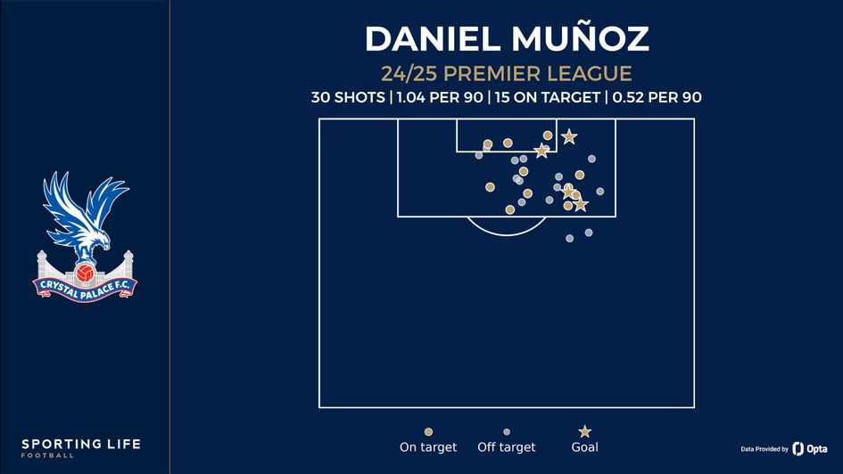 0.5pt Daniel Munoz 1+ shot on target at 3/1 (Coral, Ladbrokes)