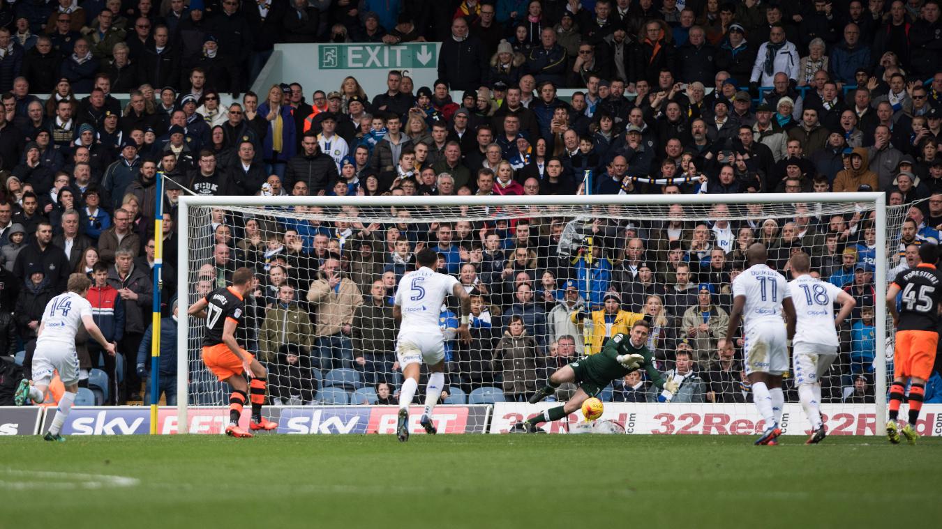 Rhodes, who has struggled to hit top form since his move from Middlesbrough, hit the penalty towards the bottom corner but Green was equal to it, tipping it on to the post and out before Leeds scrambled it clear for a corner.