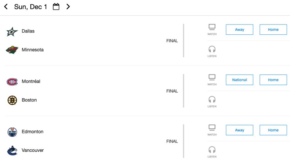 In the States, NHL TV allows the hockey fan to watch every game taking place on one day, subject to local blackout restrictions, via a paid subscription service that presents a dashboard of choice when a user logs in beyond the paywall.