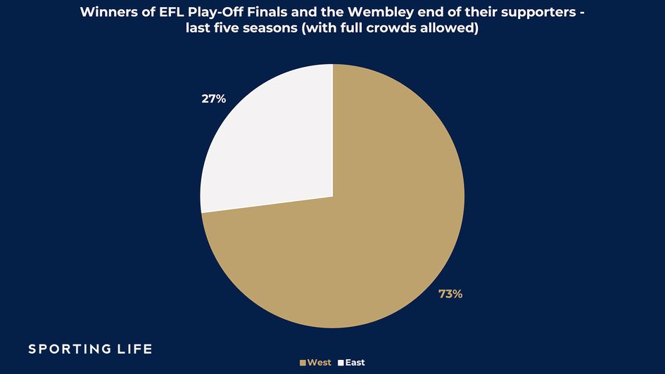Three of the previous four teams who have gone on to achieve promotion had their supporters seeing them over the line from the West end of Wembley - that’s to the left of the main TV camera angle.