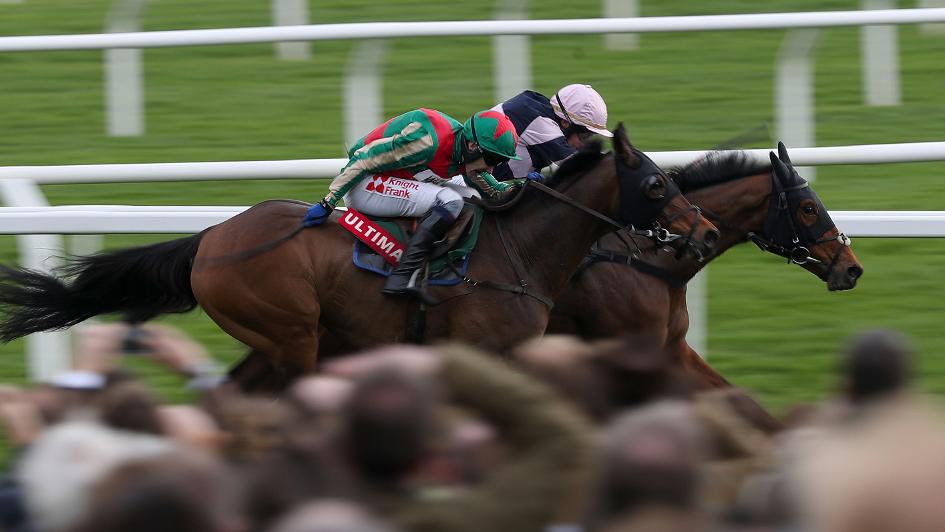 Un Temps Pour Tout (9/1) defied top weight to beat Singlefarmpayment in a photo finish for the Ultima Handicap Chase.
